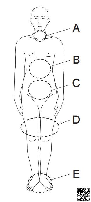 入浴時にかけ湯をする際、Dさんがお湯の温度を感じられる部位として、正しいものを1つ選びなさい。