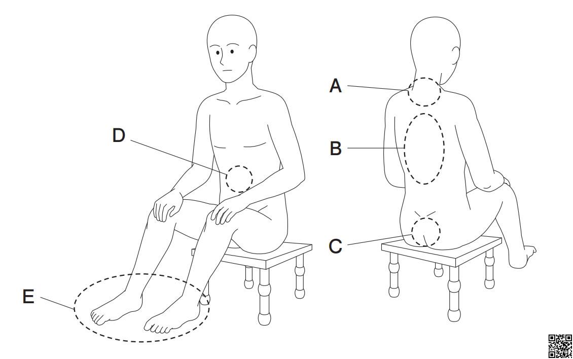 糖尿病(diabetes mellitus)のある利用者の入浴時に、特に注意して観察すべき皮膚の部位として、適切なものを1つ選びなさい。