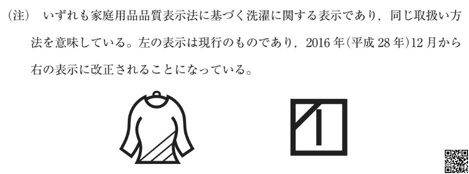 繊維製品に以下の表示があるときの取扱いの留意点として、適切なものを1つ選びなさい。